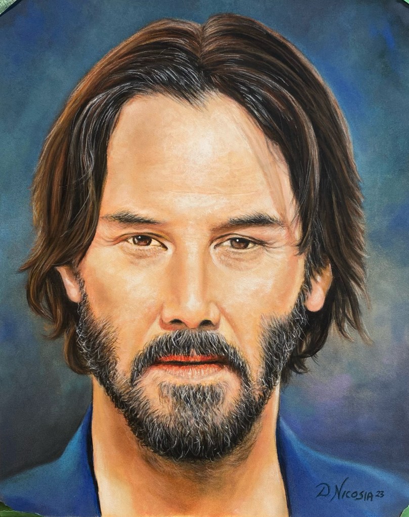 Keanu Reeves, actor. Pastel portrait 9 x 12 framed with non-glare glass. $575.00